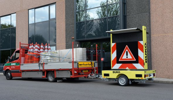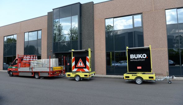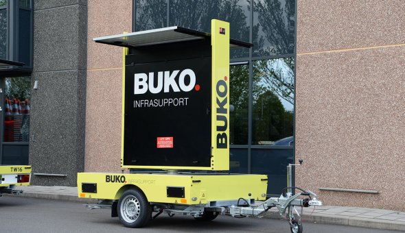 BUKO infrasupport heeft gekozen voor de tekstwagen – VW 1350 HB vanwege haar compacte formaat zonder hierbij in te leveren op functionaliteiten zoals solar-energie en afmeting van het LED-display. Voor BUKO zijn de tekstwagens voorzien van zes semi-tractie accu’s in plaats van de gebruikelijk vier stuks.