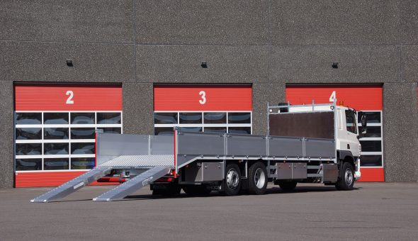 De gehele configuratie van de open laadbak wordt afgestemd op het transport van uw lading. De neerklapbare en afneembare aluminium zijwanden maken het mogelijk dat er grote lengtes kunnen worden geladen en de stukgoederen vanaf elke zijde eenvoudig gelost kunnen worden. Ook is het mogelijk om de open carrosserie als kipper uit te voeren.