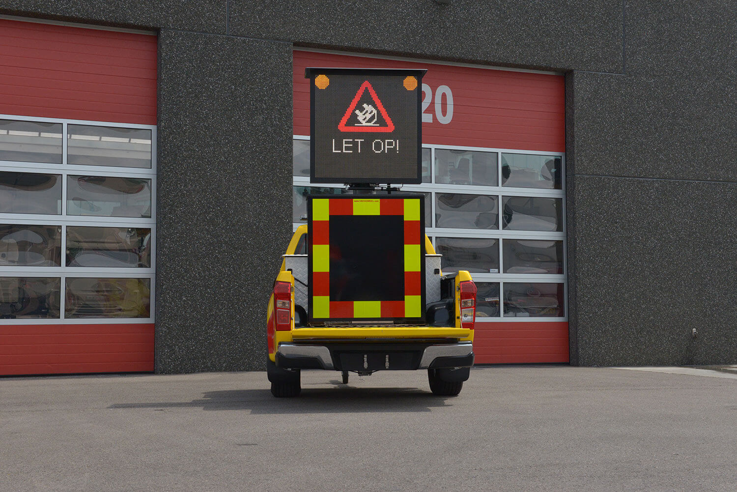 De weginspecteur heeft alle instrumenten van het inspectievoertuig in één hand (tablet) om verkeersingrepen uit te voeren en zichzelf in een veilige zone te plaatsen.