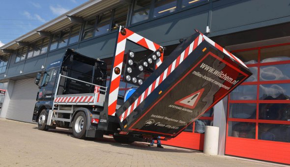 Om tijdens de nachtelijke werkuren de botsabsorber beter zichtbaar te maken voor de weggebruikers, is er de mogelijkheid om deze aan te stralen met diverse LED-lampen. Hiervoor plaatsen wij onder andere een pneumatische mast waarop LED-werklampen worden gemonteerd.
