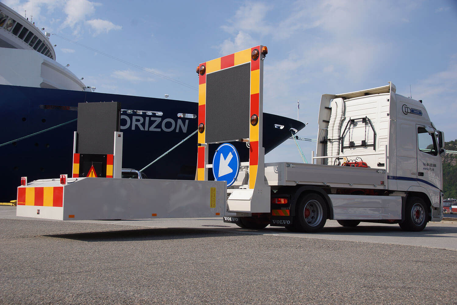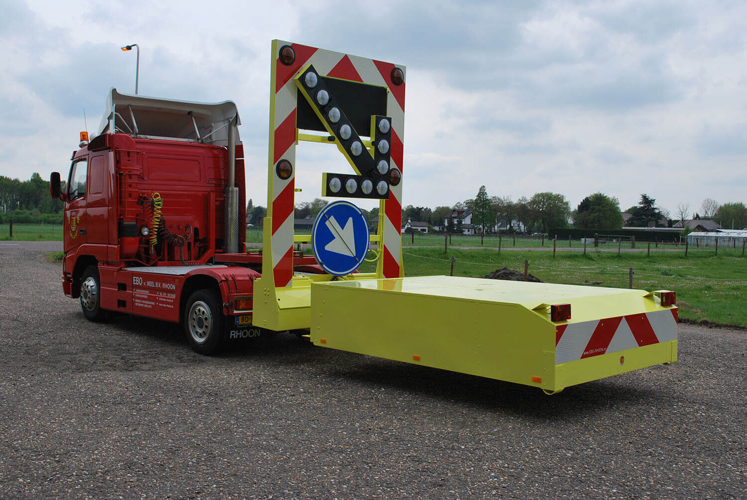 Onder deze lampenpijl wordt het draaibaar D02 geïnstalleerd welke meedraait in de richting van de pijl. Aan de onderzijde vindt men de afsluitbare bedieningsluiken waarin zich de hydraulische pomp-unit en de accu’s bevinden.