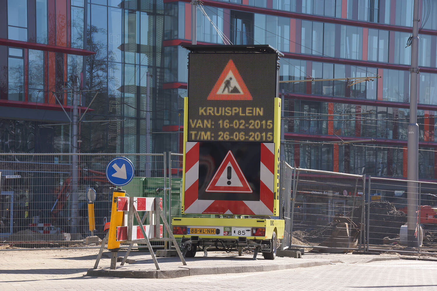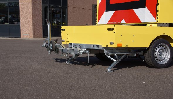 Snel en eenvoudig. Dat is ons uitgangspunt waarvoor de enkel asser tekstwagen is ontworpen. Door middel van handbediende steunpoten en een hydraulisch uitschuifbaar LED-display kan de tekstwagen in één handomdraai operationeel worden gemaakt. Deze compacte tekstwagen is uitgerust met een 80*80 display welke tot een hoogte van wel 4000mm uitgeschoven kan worden!