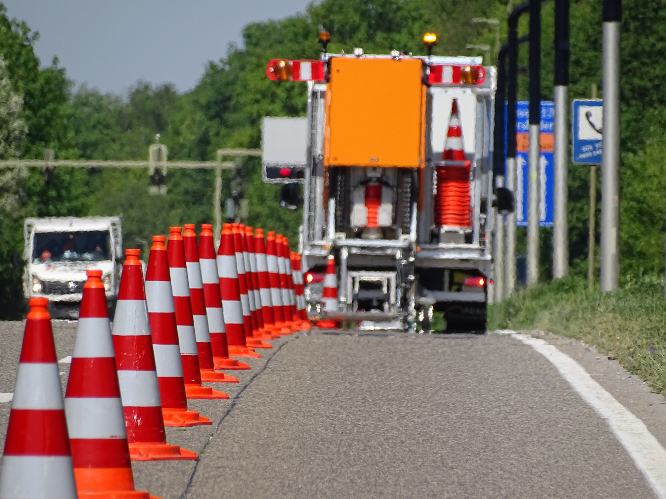 De Vol Automatische Kegelzetter kan hierdoor op alle smalle wegen, vluchtstroken en tunnels veilig ingezet worden. Juist op deze plekken is het voor wegwerkers niet veilig.